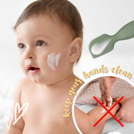 Diaper Cream Applicator Set - Soft Silicone Baby Bum Brush with Suction Base, Baby Butt Spatula, Mini Size, 4 Piece - Newborn Baby Essentials (Sage/Ether/Sand/Blush)