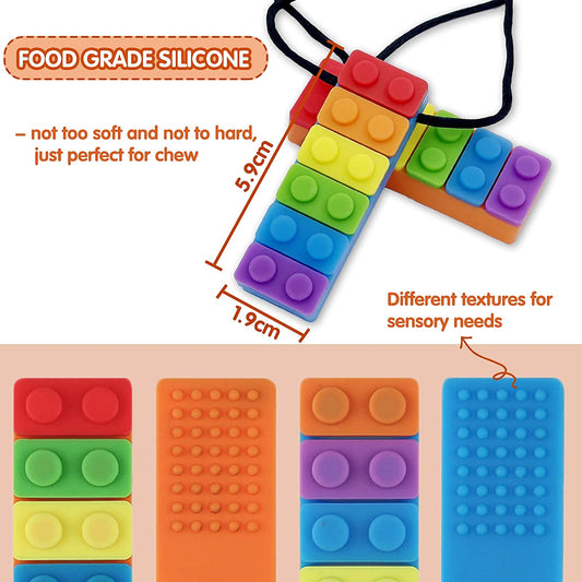 2 Pack Sensory Chew Necklace for Kids Toddlers, Silicone Rainbow Pendant Sticks Autism Chewing Toys Set for Kids with ADHD, Teething, Anxiety, Biting Needs, Oral Sensory Motor Aids